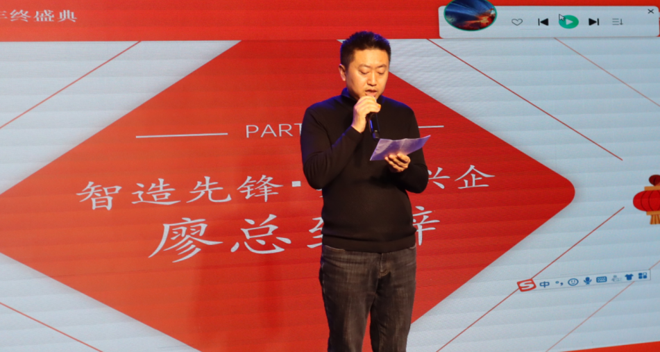 年会一开始,董事长上台致辞。他既回顾了公司在智能制造领域的扎实进展和亮眼成绩,也向每一位坚守岗位、踏实肯干的同事表达了诚挚的感谢。